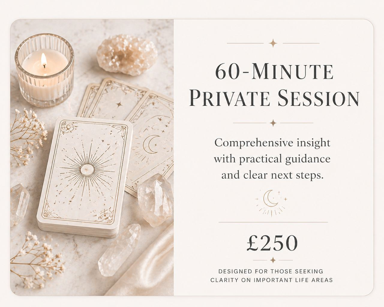 I take immense pride in delivering high-quality services to my clients. My extensive training, including qualifications, diplomas, and certificates from institutions like the Arthur Findlay College, The College Of Psychic Studies, and Tony Stockwell, covers various specialties such as Advanced Tarot, Spellcasting, Spiritual Counseling, Mediumship, Psychic Development, and Spiritual Development awarded by The London Spiritualist Mission. This training ensures that my readings are always impactful and focused.